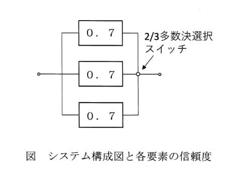Ⅰ-Ⅰ- 4 3個の同じ機能の構成要素中2個以上が正常に動作している場合に、系が正常に動作するように構成されているものを2/3多数決冗長系という。
