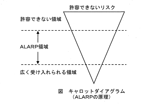近年リスクアセスメントの手法として、下図に示す英国安全衛生庁のキャロットダイアグラム (ALARPの原理) の考え方がIEC (国際電気標準会議) (国際電気標準会議) やJIS (日本産業規格)に取り入られている。